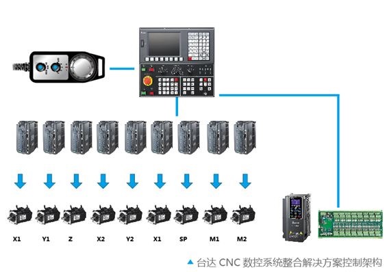 該新型無心磨床的一大特色就是采用了雙機械手自動送料系統(tǒng),因此,客戶要求磨削加工和自動送料可以同時動作,以求提高效率、縮短加工時間,這樣就需要通過雙通道控制系統(tǒng)來實現(xiàn),但成本很高。而在臺達的整合解決方案中,ASDA-A2系列伺服驅(qū)動器本身具有強大的PR功能(內(nèi)部位置編程模式),可以提供高達64點內(nèi)部地址,可規(guī)劃多樣多點連續(xù)運動路徑,同時可以和上位控制器CNC進行友善便捷地通訊。在此功能模式下,雙機械手可以完成送料的各種動作,操作人員也可以設(shè)置機械手的各位置參數(shù)。利用A2系列伺服驅(qū)動器的PR功能模式,客戶通過單通道控制系統(tǒng)就可以滿足設(shè)備運動控制需求,大大降低了系統(tǒng)建構(gòu)成本?! ?br/>臺達CNC數(shù)控系統(tǒng)整合解決方案的優(yōu)勢: