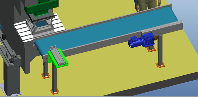 10)    出料輸送線的的取料機構(gòu)將成型好的外殼從外外殼成型工位取出并放到輸送線上,由輸送線將外殼傳送到遠離沖床位置,方便人工碼放。