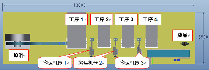2)    由于各設(shè)備均為獨立運行,耗時為4s,故生產(chǎn)線的生產(chǎn)效率為4s/件。