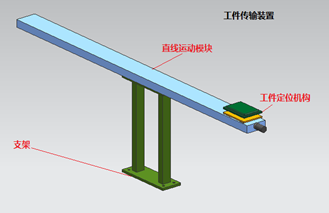 該平臺(tái)的作用是將上工序放料位置的工件快速搬運(yùn)到本工序的取料位置。平臺(tái)由工件定位裝置、支架和高速直線運(yùn)動(dòng)模塊等幾部分構(gòu)成。該直線模塊的運(yùn)動(dòng)速度超過2M/S,實(shí)現(xiàn)工件的快速移動(dòng)。