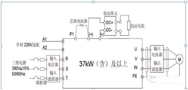 4、變頻器三種電抗器連接示意圖:
