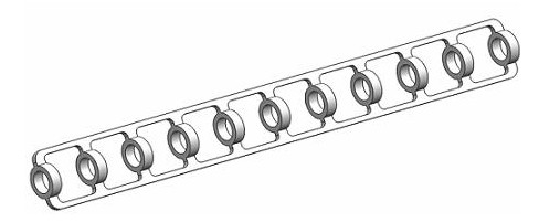 為減少接觸,滾動組件之間需要留有間隙。但是如此一來,因為運行時的微小誤差,很容易使?jié)L動組件集中。這樣不但無法改善摩擦阻力,反而引發(fā)負(fù)載不均的問題。為了讓滾動組件之間保持一定的間隙,一般的軸承采用位置保持器(RETAINER)的設(shè)計。而線性滑軌則采用了具有撓性的同步聯(lián)結(jié)器( SYNCHRONOUS COMPONENT)。如圖4所示,為HIWIN(上銀科技)公司所提出的SYNCHMOTIONTM同步聯(lián)結(jié)器。