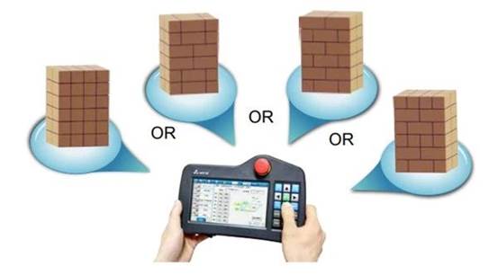 針對(duì)碼垛機(jī)器人的工作需求,臺(tái)達(dá)提供碼垛機(jī)機(jī)器人系統(tǒng),主要包含硬件和軟件的完整解決方案,提供運(yùn)動(dòng)控制器、伺服馬達(dá)、I/O模塊等硬件產(chǎn)品,以及碼垛機(jī)系統(tǒng)控制軟件。客戶選配臺(tái)達(dá)碼垛機(jī)器人系統(tǒng)后進(jìn)行配線安裝,無需進(jìn)行任何程序開發(fā),即可開始使用。