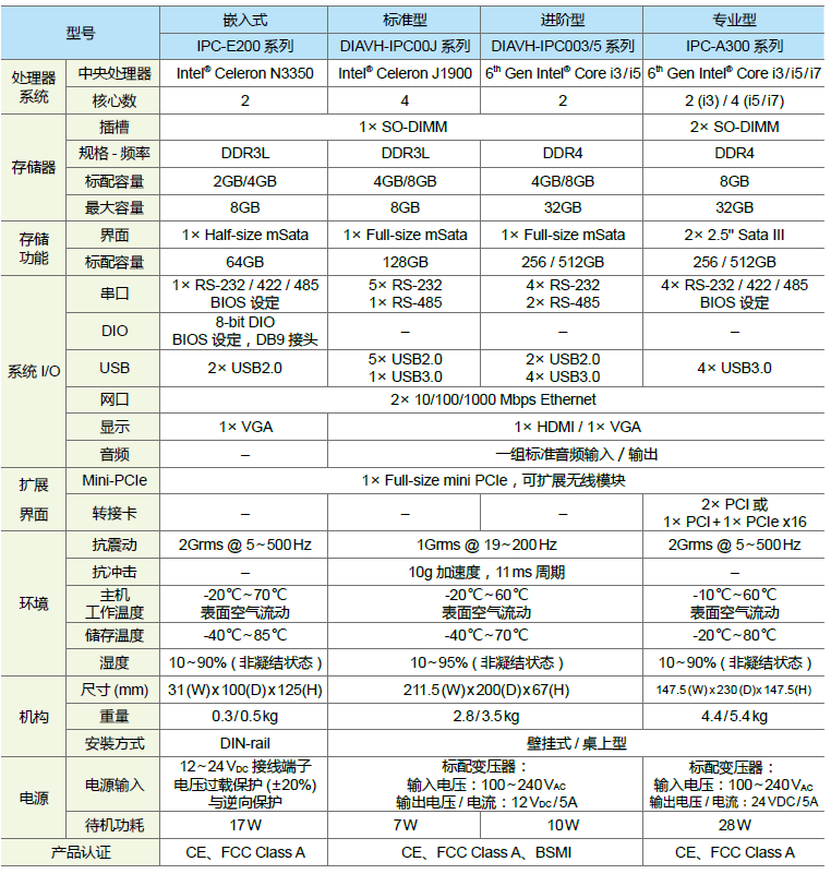 • 高性能、高可靠、密封無風(fēng)扇的工業(yè)計(jì)算機(jī),板載Intel? Celeron N3350/J1900 & Intel? Core Processor i3/ i5/ i7 處理器,***大8GB RAM 內(nèi)存,整機(jī)具有豐富的 I/O 接口。支持Windows 7/8/10、Linux等操作系統(tǒng)